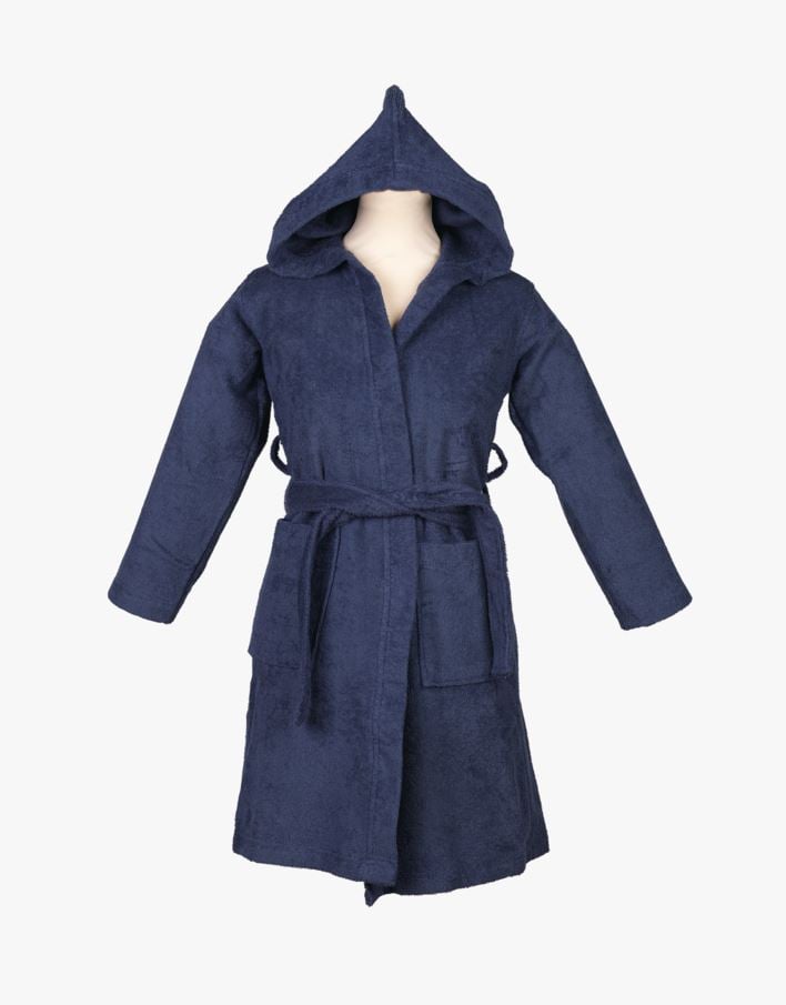 Mjuk och härlig badrock i frotté för barn. Morgonrocken har två stora fickor fram, en huva och ett knytband i midjan. Vikt 350 g/m².