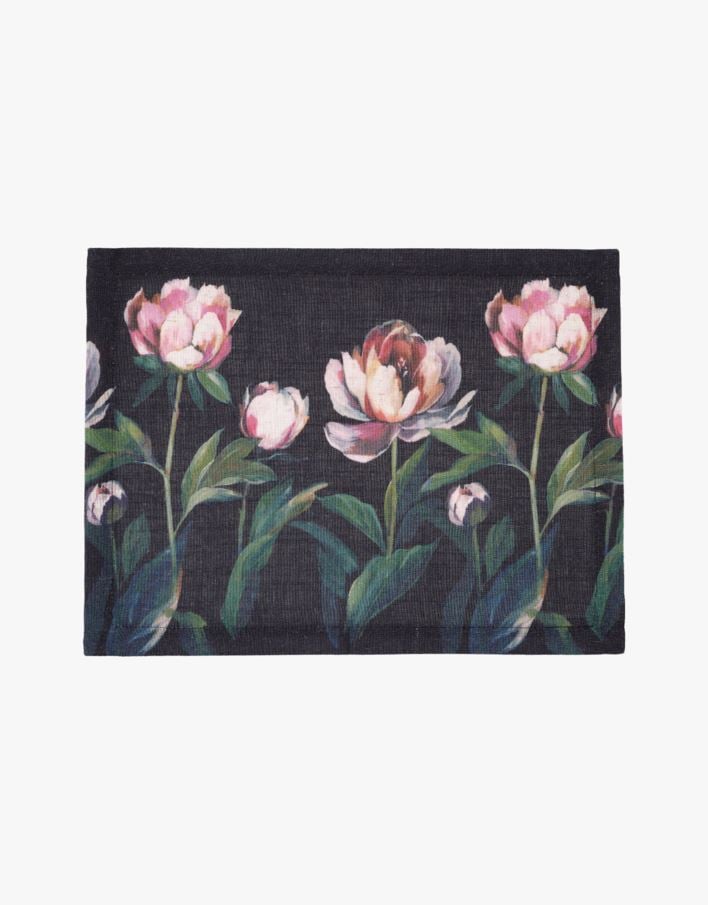 Bordstablett i halvlinne med blommor på. En snygg detalj som även skyddar bordet eller duken.
