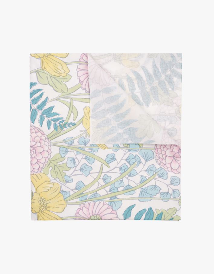 Avtorkningsbar duk med blommönster i pastellfärger. En vacker duk som ger bordet en klädd känsla. Kombinera gärna med pappersservetter eller tygservetter för en dekorativ dukning. En belagd bomullsduk som är vattenavvisande och spilltålig, ett trevligare alternativ till en klassisk vaxduk. Duken har en tunn vattenavvisande beläggning (akrylatbeläggning, ej PVC) som gör att duken är lätt att torka ren med en fuktig trasa. Maskintvätt 40 grader.