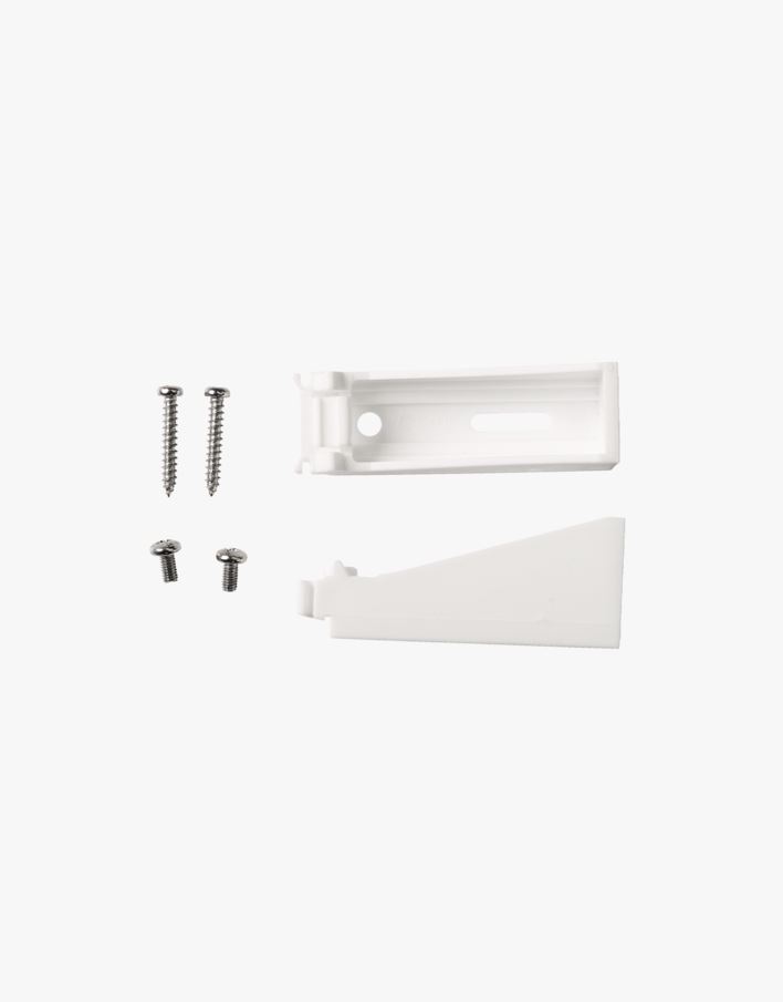 Monteringsfästen till Aksel gardinskena. 7 cm avstånd till vägg. Kan monteras i tak eller på vägg. Skenan klickas lätt i fästena. Vill man ha gardinskenan fäst med större avstånd till väggen kan man använda sig av en vinkel som säljs separat. Att använda en väggvinkel kommer att få gardinen att falla fint även om fönsterkarmen sticker ut något. Förpackningen innehåller 2st fästen.