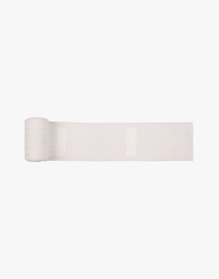 På gardinstång kan en multibandslängd hängas på tre olika sätt. Direkt i hällorna, på baksidan av stången eller med hjälp av fingerkrokar eller ringar på stången. Det spelar ingen roll vilken typ av gardinstång du har, multibandet fungerar till allt. Multibandet är tillverkat i polyester. Multibandet sys direkt på gardinen.