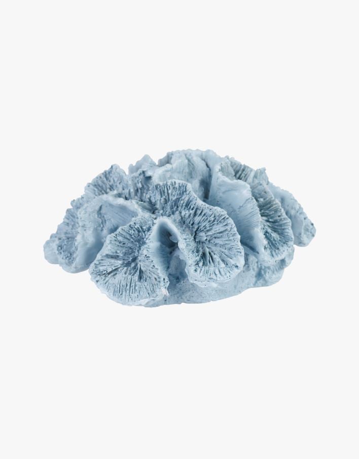 Dekoration av polyresin formad som en korall. Enfärgad med matt yta. Korallen bli en vacker prydnad på bordet eller i fönstret. En fin inredningsdetalj som kan placeras på en trave med böcker för att kontrastera den fyrkantiga formen.