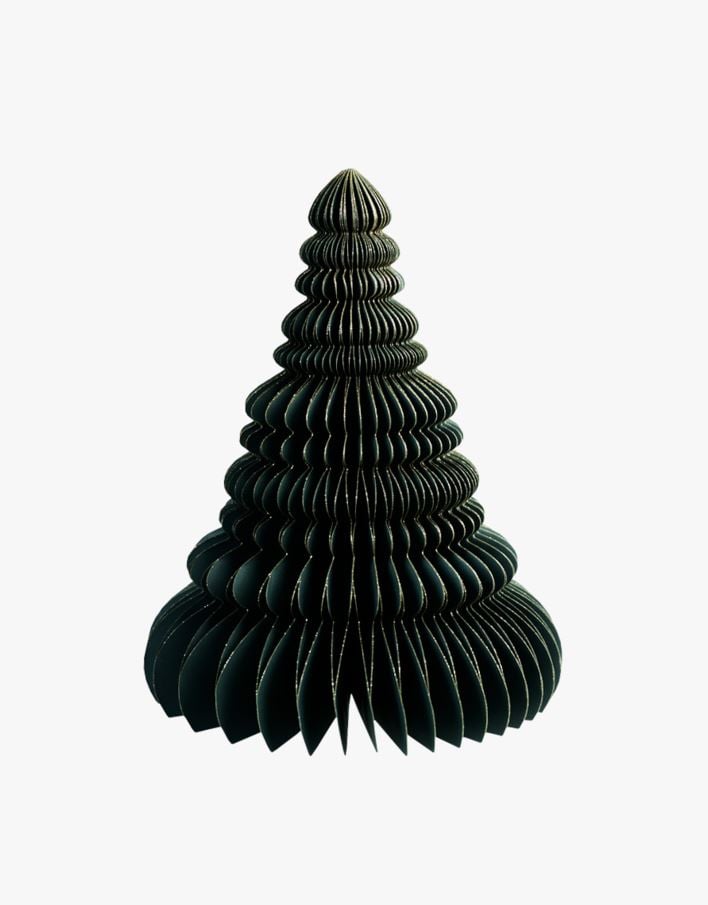 Juldekoration tillverkad i papper och formad som en gran. Julgranen kommer plattpackad och kan enkelt vikas ut och vikas ihop igen vid behov. Sidorna fästs enkelt med magnet som som finns på sidorna.