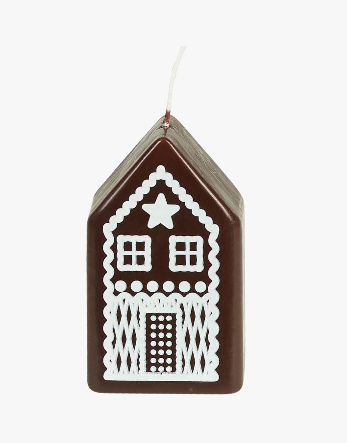 Prydnadsljus i form av ett pepparkakshus. Ljuset blir en mysig dekoration under julen. Ca 25 timmars brinntid.
