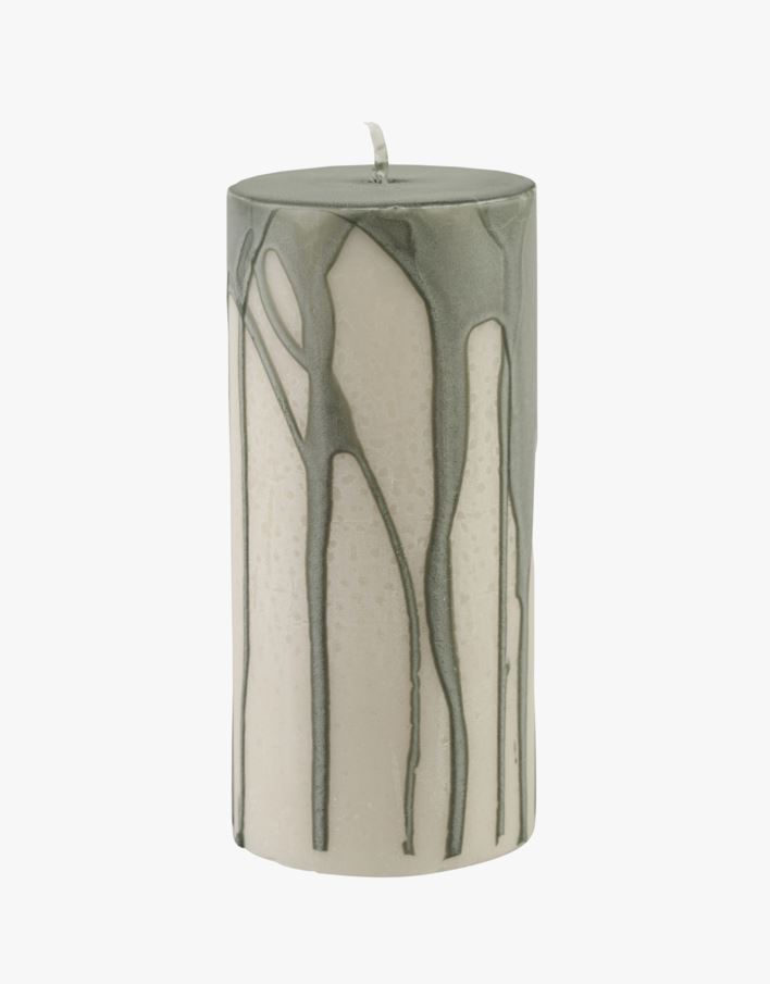Blockljus med dekorativt mönster av stearin. Längden på ljuset är 15 cm.