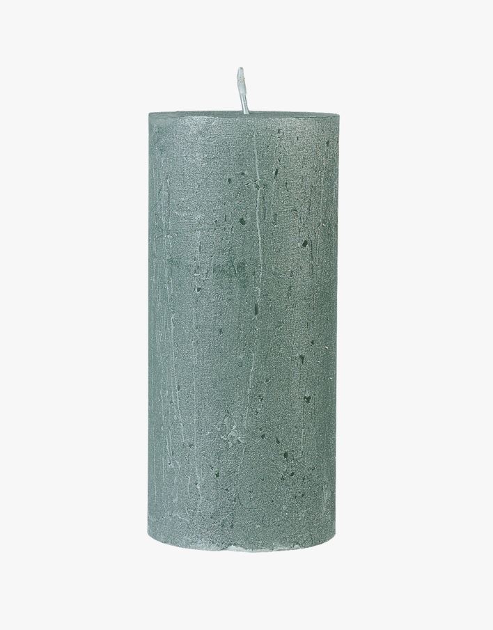 Rustikt blockljus med vitpressad kärna och metallisk finish. Ljuset är av 100% paraffin och har en brinntid på cirka 70 timmar.