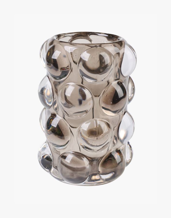 Dekorativ lykta av glas med spännande form i bubbligt mönster som sätter stämningen i rummet. Ljuslyktan har plats för ett värmeljus.