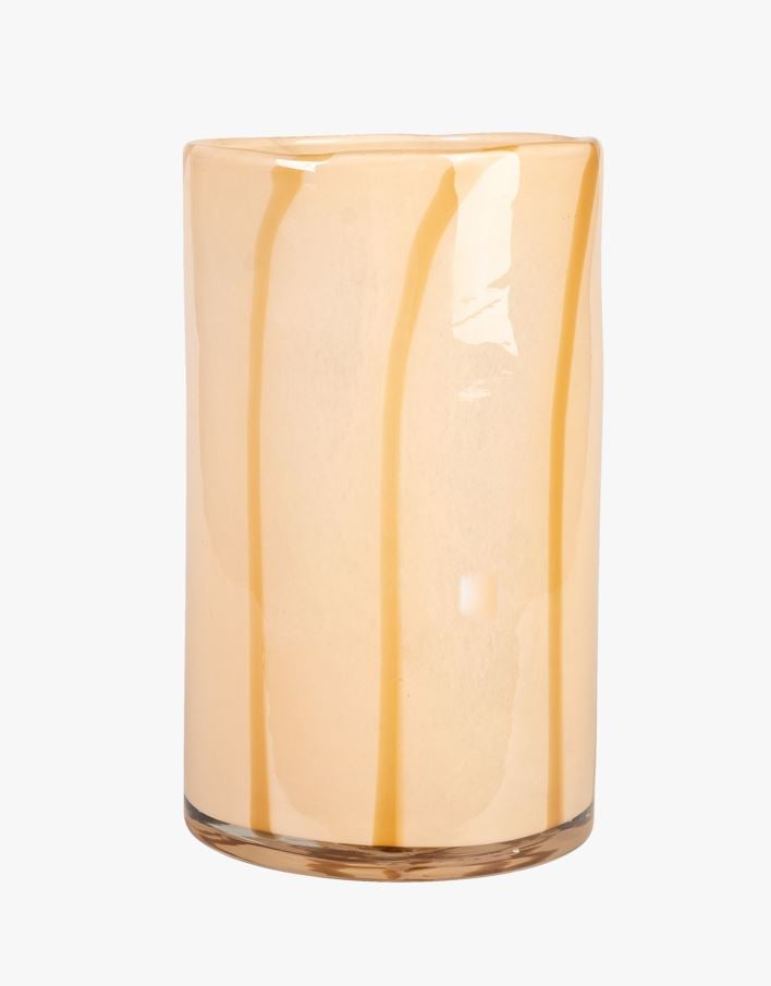 Lykta i glas i en vacker färgton med dekorativa ränder. Värmeljushållaren sprider ett vackert sken i rummet och har plats för ett värmeljus.