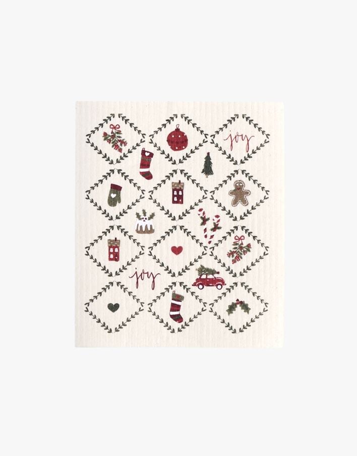 Disktrasa med julmotiv som är tillverkad av cellulosa och bomullsrester från annan produktion. En disktrasa som absorberar 15 gånger sin egen vikt. Kan tvättas i både tvättmaskin och diskmaskin och användas om och om igen.