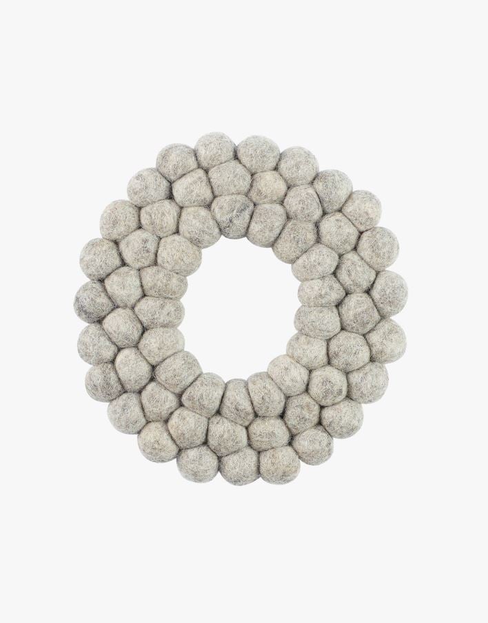 Handgjort grytunderlägg tillverkat av små kulor av 100% ull.