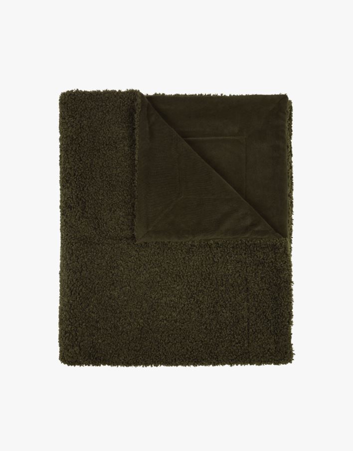 Pläd i pälsimitation olivgrön - 130x170 cm