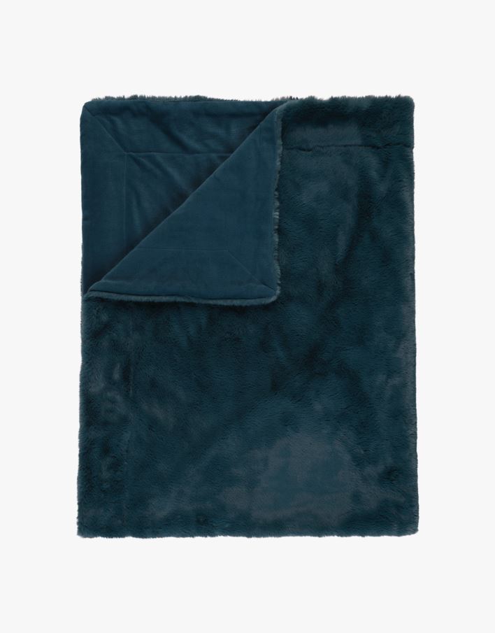 Pläd i pälsimitation petroleumblå - 130x170 cm