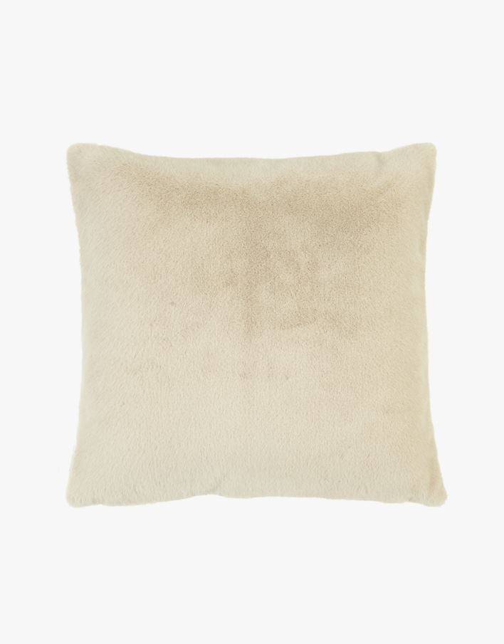 Enfärgad prydnadskudde i mjuk fuskpäls. Kudden är mysig och mjuk och blir en härlig inredningsdetalj i soffan. Dekorera soffan eller sängen med kuddar i olika mönster och material för ett personligt uttryck.