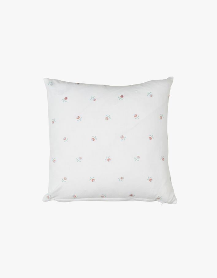 Prydnadskudde med överdrag i 100% bomull med broderade blommor.