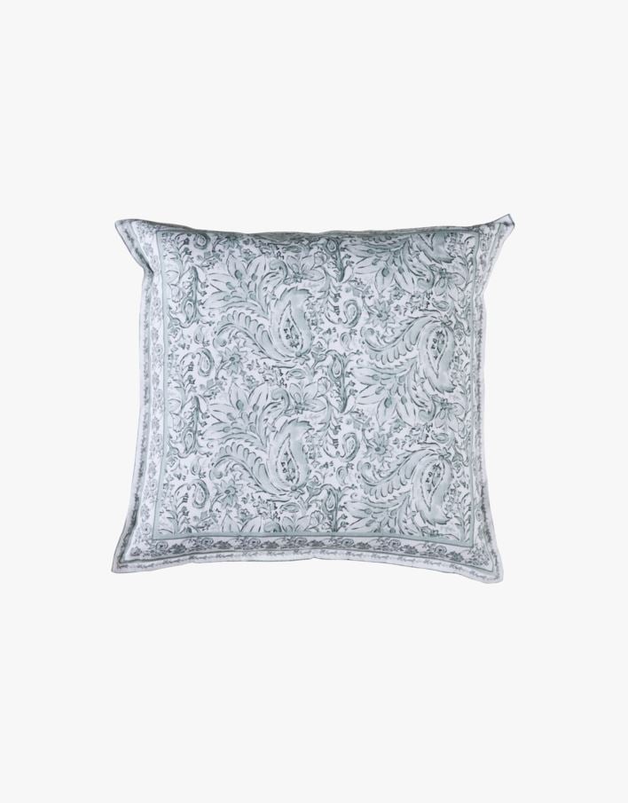 Kuddfodral i 100% bomull med printat bladmönster på framsidan och enfärgad baksida.