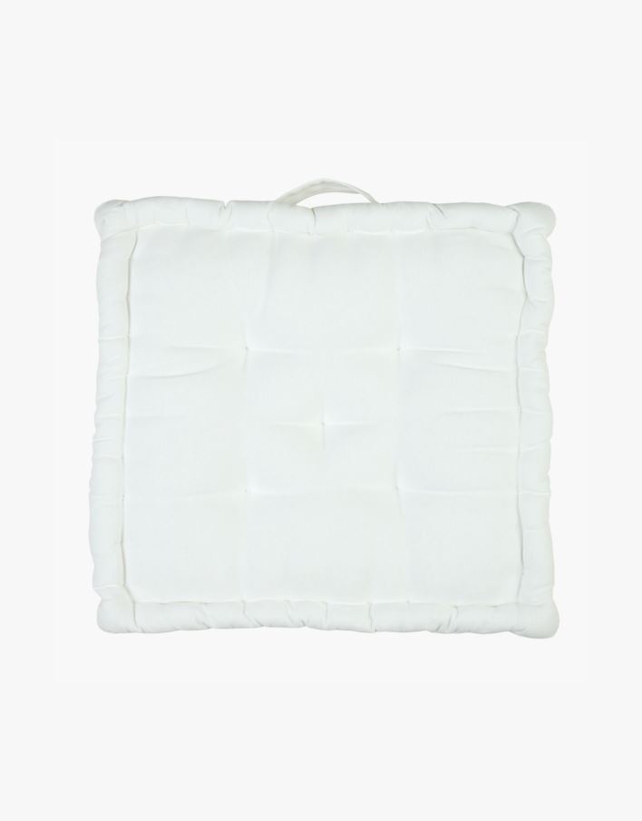 Sittkudde med handtag i ett enfärgat bomullstyg och fyllning av 100% återvunnen polyester.