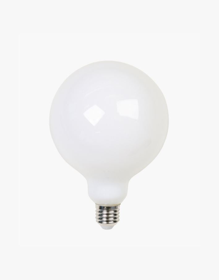 Glödlampa som kombinerar bra ljus med en iögonfallande design – perfekt för öppna lampor och dekorativ belysning. Ljuskällan är dimbar och har en ljusstyrka på 320 lumen. Färgtemperaturen är 2700 kelvin, och den levereras med sockeltyp E27. Effektförbrukningen är 4 watt. Detta är en LED-ljuskälla med 360° strålvinkel, avsedd endast för inomhusbruk (IP20) och inte lämplig för våtrum.
