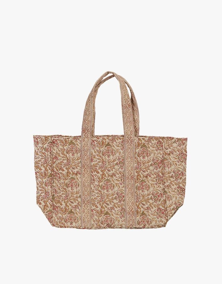 Stor och rymlig väska med mönster inspirerat av den traditionella indiska blockprintet.